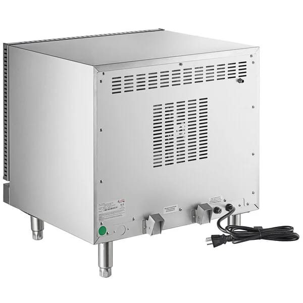 Made with a stainless steel interior, the oven cavity won’t corrode or rust, even with the accidental spill or leak. The exterior of the oven, also made of stainless steel, provides overall durability. To abide by food safety guidelines, the unit is equipped with 4″ stainless steel legs, which raise the oven off of the countertop surface below for improved airflow and easy cleaning. A 208/240V electrical connection is required for operation.